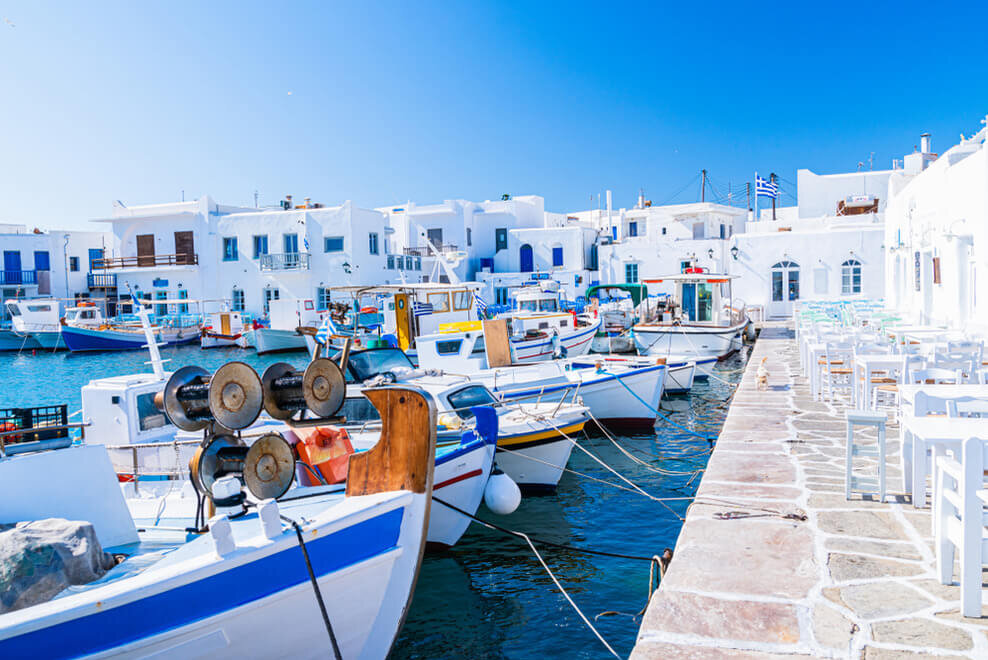 Its harbor towns of Naoussa and Parikia are among the prettiest in the Aegean, combining lively nightlife with elegant simplicity. Swim in crystal waters, wander through marble-paved alleys, and enjoy fine dining in seaside restaurants that capture the refined essence of island life.