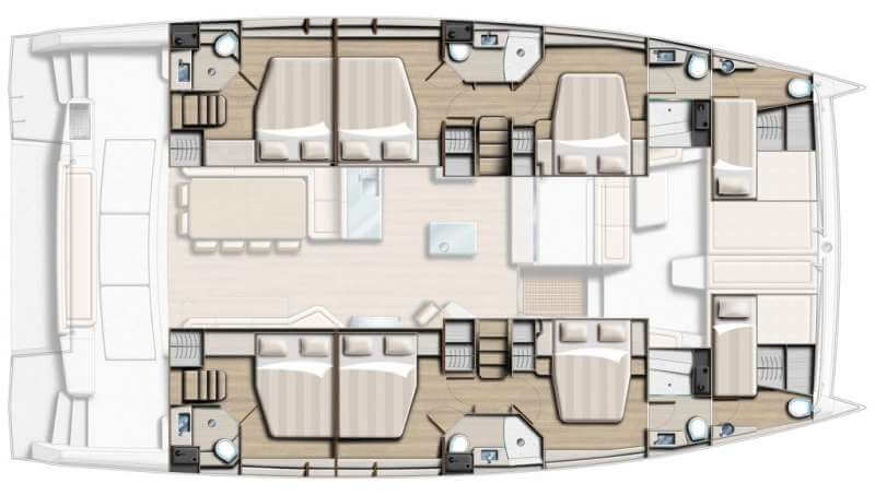The Bali 5.4 is characterized by the enormous, flush-decked saloon/galley/aft cockpit area or in sitting comfortably in the forward deck saloon which is accessed directly from inside, open to the water. You enjoy the most of the huge relaxation areas on the incredible flybridge, you will have a sense of well-being. A feeling of luxury and comfort only found aboard big boats.