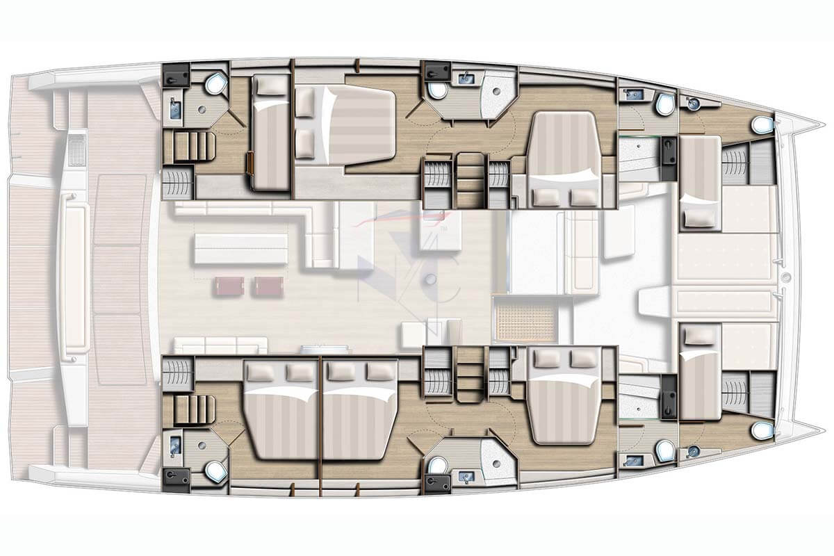 The Bali 5.4 is characterized by the enormous, flush-decked saloon / galley / aft cockpit area or in sitting comfortably in the forward deck saloon which is accessed directly from inside, open to the water. You enjoy the most of the huge relaxation areas on the incredible flybridge, you will have a sense of well-being. A feeling of luxury and comfort only found aboard big boats.