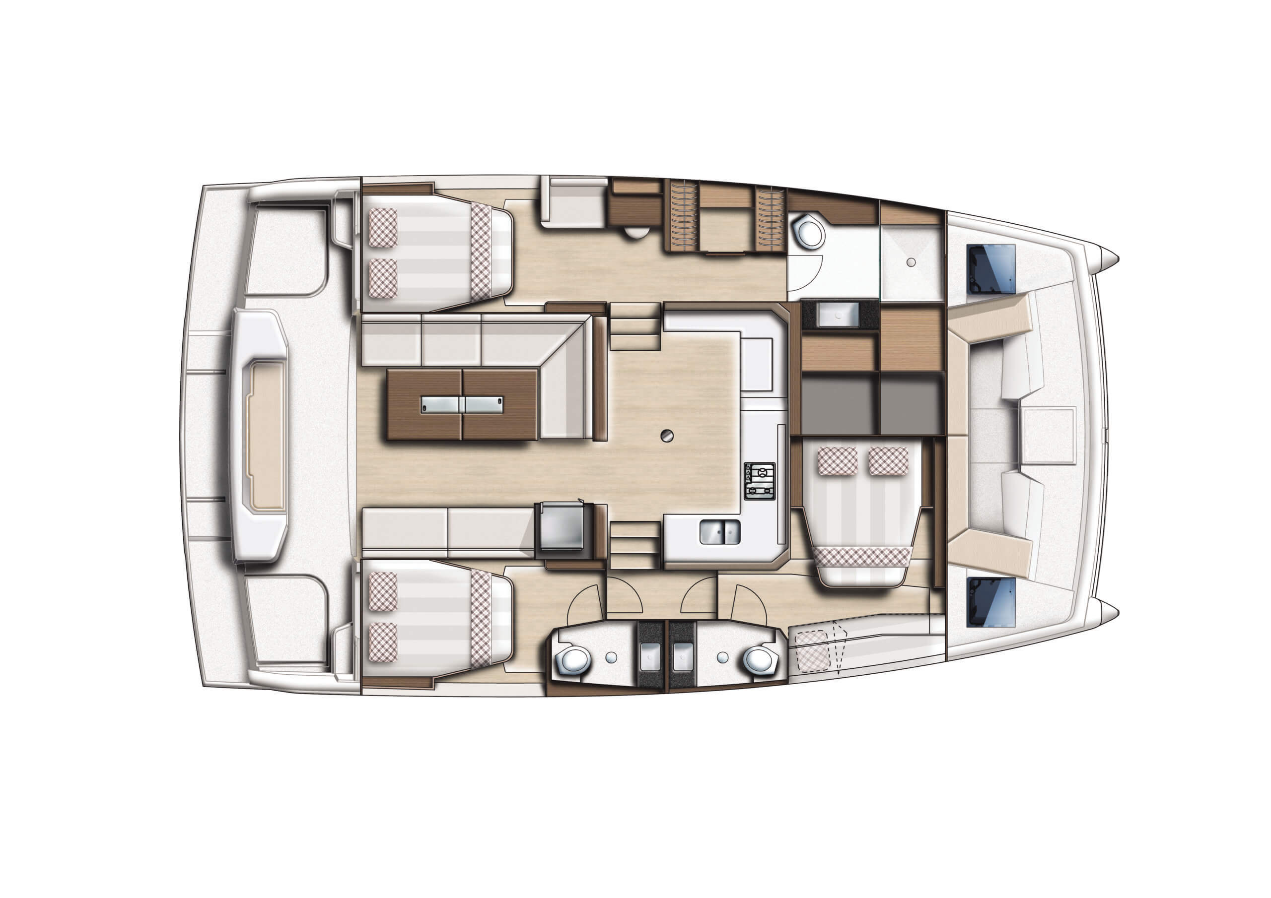The most successful catamaran in her class. The integral deck, efficient for sailing, allows you to move smooth around the various spaces, from the aft platform with bench seat to the forward cockpit with lounge and sunbathing area. The full-comfort flybridge is home to an immense and safe relaxation area as well as the helm station designed for single-handed or short-handed use… not to mention the performance and quality that make the Catana group’s range so successful.