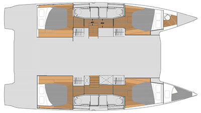 This elegant new catamaran also delivers all-embracing harmony, with an abundance of light, an extensive cockpit opening onto an innovative saloon, together with the largest lounge space of her category, and lots of invisible storage.
