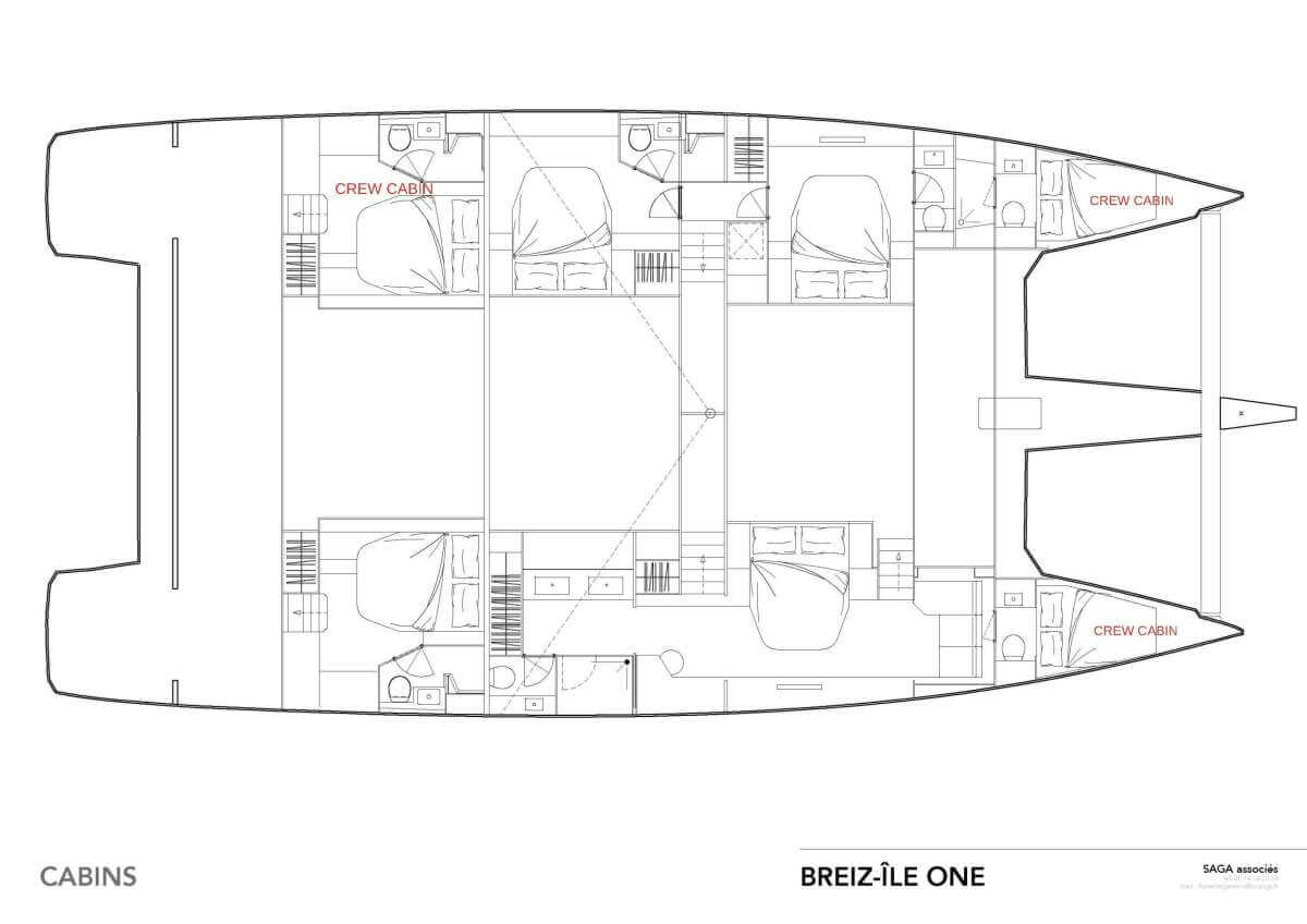 Every detail has been meticulously thought out to create innovative and spacious architecture with a homely atmosphere. The design, which is bathed in natural light, enables owners to choose their desired accommodation layouts – choose from three, four, five or even six cabins! The lagoon has provided an innovative saloon concept across two levels with two separate areas: a large galley that opens onto the cockpit on one side and a slightly elevated lounge area for enhanced panoramic vision, which can easily be turned into a dining area if needed.