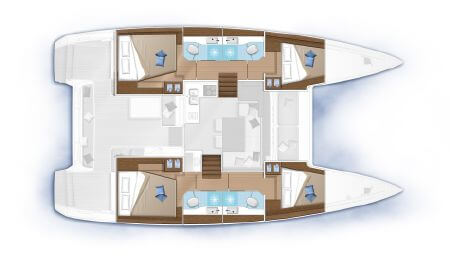With her new visual identity, the 40 immediately stands out. While faithful to the image of Lagoon’s “DNA”, a new style is born: an individual, streamlined and accomplished design depicts her large portholes and panoramic view. This creates a refined and high-performance unit, emphasized by the chamfer running from the bow to the stern.
