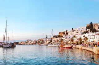 Should you tire of frolicking on the shore, three supersized kouros statues are hidden in the hills and there are dozens of drowsy villages to explore. Try kitron, the local citron liqueur, at the Vallindras distillery in Halki or sample homemade wine and arseniko cheese under the plane trees in Ano Potamia village. No wonder Herodotus described Naxos as “the happiest of islands.”